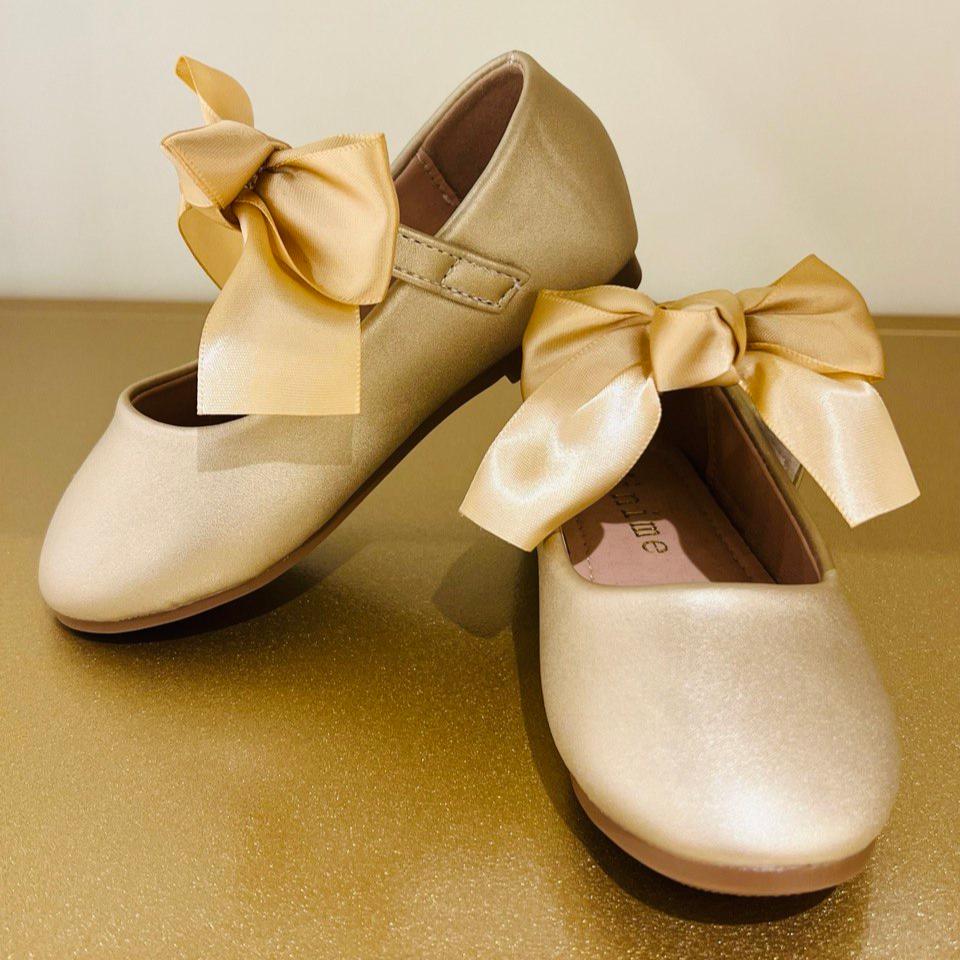 Gold Mary Jane Shoes with Satin Bow