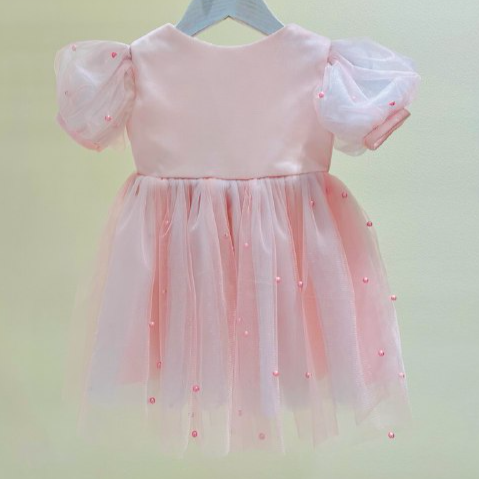 This elegant pink tulle dress is ideal for weddings, birthday parties, holiday celebrations, or any formal event where your little one can shine. The combination of satin and tulle, along with the delicate pearl embellishments, ensures she will look like a true princess.